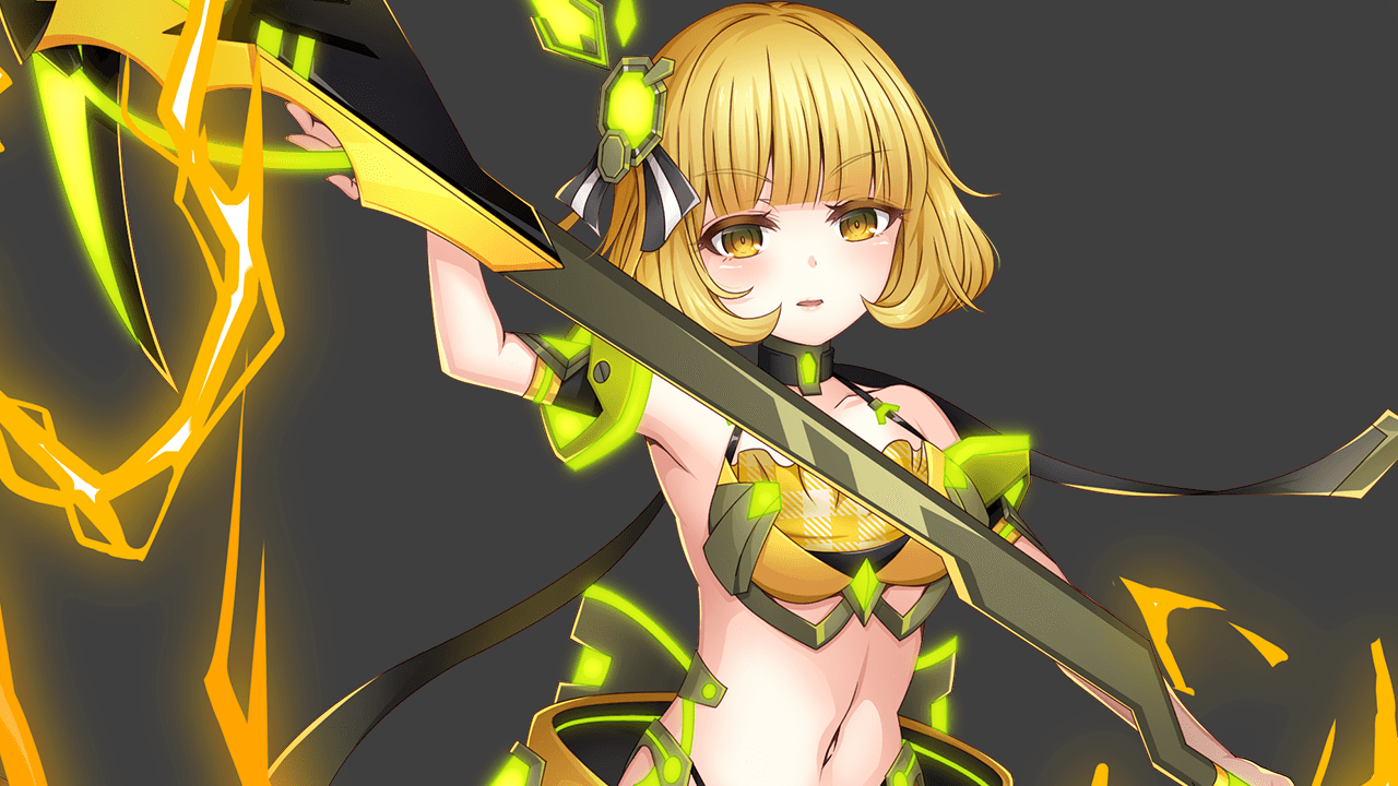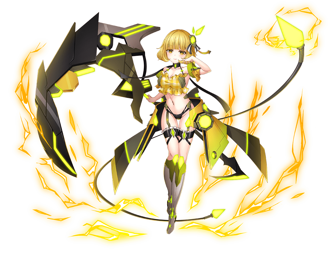 タナトスによって魂を五つに千切られた日、メルは耐えが たい痛みと共に、貴族としての矜持を折り砕かれた。しか し、タナトスに鹵獲された数十年の内に育った妹が故郷の 為に戦う姿に、彼女は再び顔を上げる。揺籃の地を護る『 優しき道化伯爵』は此処に蘇り、大切な人の為に鎌を手に する。守るべきものを背にしたメルは笑顔の下で泣きじゃ くり、悲鳴を上げながらも、震える足は後に引かず――か つて、親友である魔剣狼侯爵と並び立つと謳われた在りし 日の英雄の力は、失われた誇りを体現する。 |