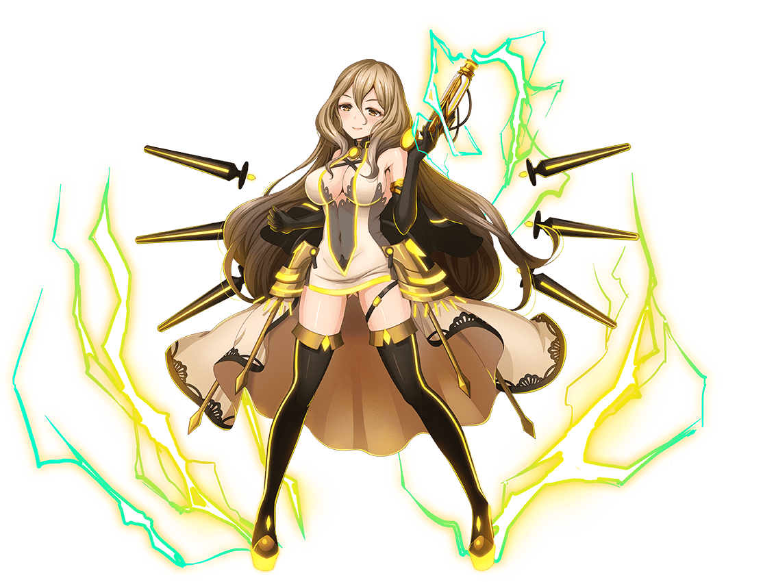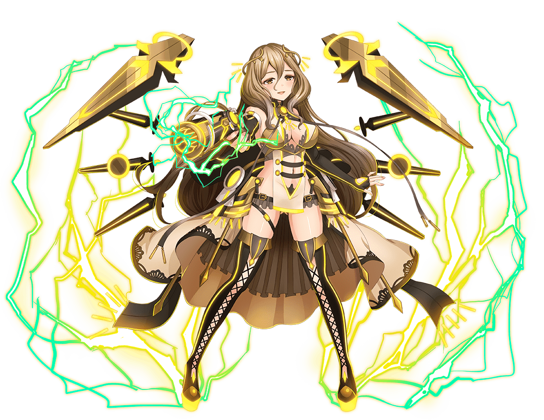信者のことを想い行動する姿から『聖女』と呼ばれるメリトだったが、タナトスのような『神敵』に対しては冷徹に行動する。 彼女は自らの信じる神から信仰を奪い、自分たちを弾圧する者たちへ憎悪にも似た敵意を抱いている。 エナジーで錬成した拳銃で、ウェシルへの祈りと神を畏れぬ者への憎しみを弾丸にして、メリトは神の代行者としてすべての敵対者へ神罰を下す。 |