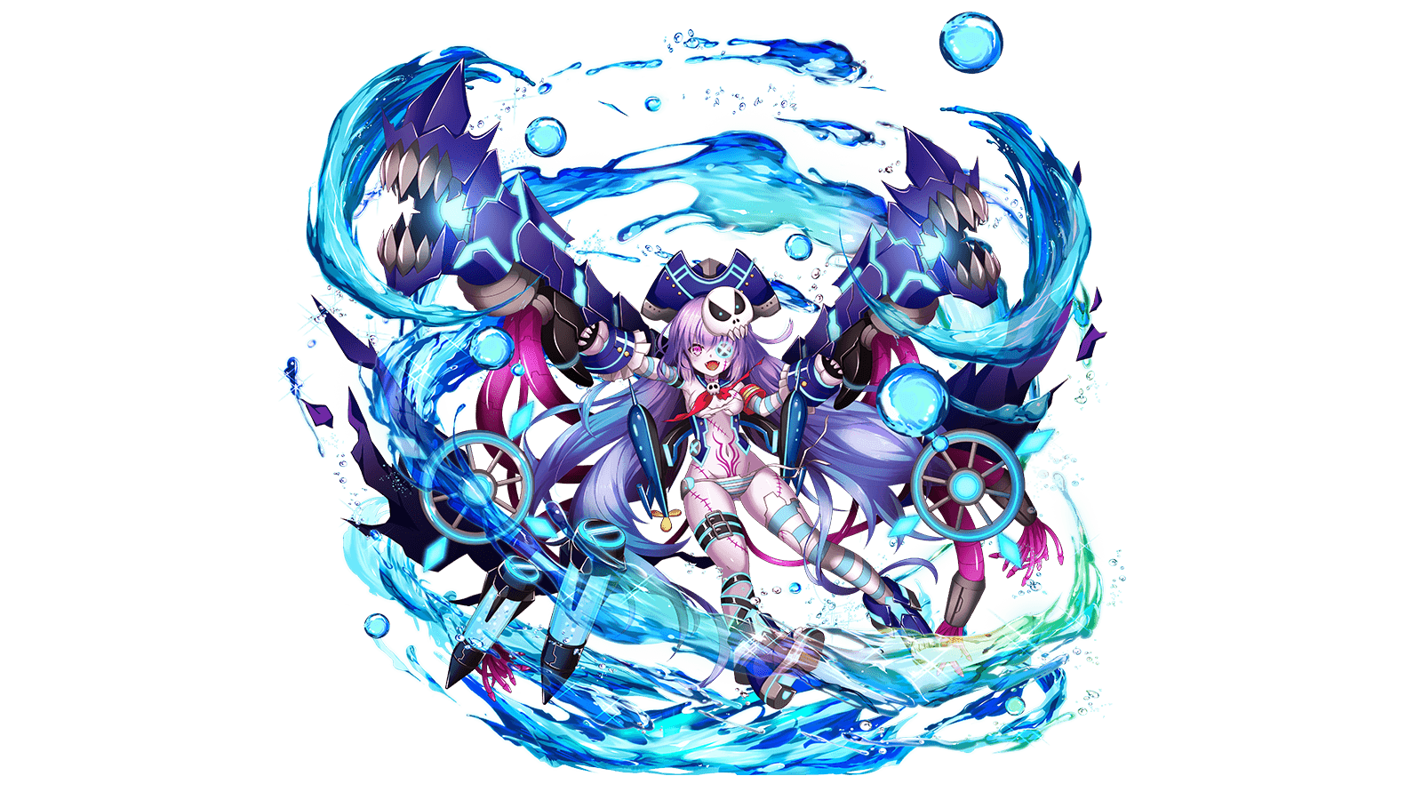 レヴィアを侵食するエナジーは体内に融合したタナトスパ ーツと共鳴し、肉体の限界を超えた力を未知のエナジー保 存領域より出力する。しかし、強力な火力を有する砲を撃 ち続ければ、その銃身は焼けつく――レヴィアの肉体は強 すぎるエナジー出力に耐えられず、修復されたはずのタナ トスによる手術痕を浮き上がらせ、崩壊の予兆を見せてい る。同時に、彼女の錬成するエナジー体にはタナトスを構 成する部品と一致する点が散見されており、遠くない未来 に彼女を構成する『部品』は異世界の侵略者へと成り果て るだろう。 |