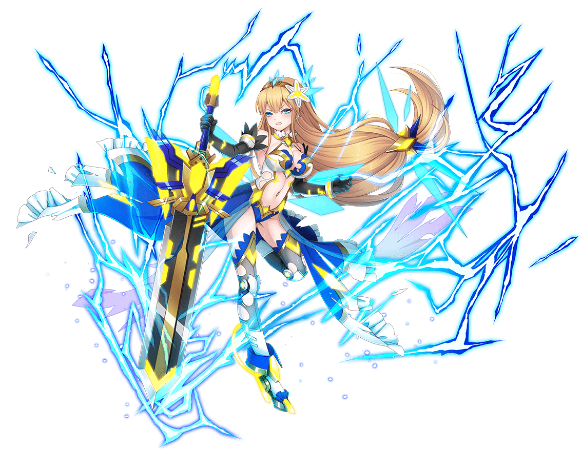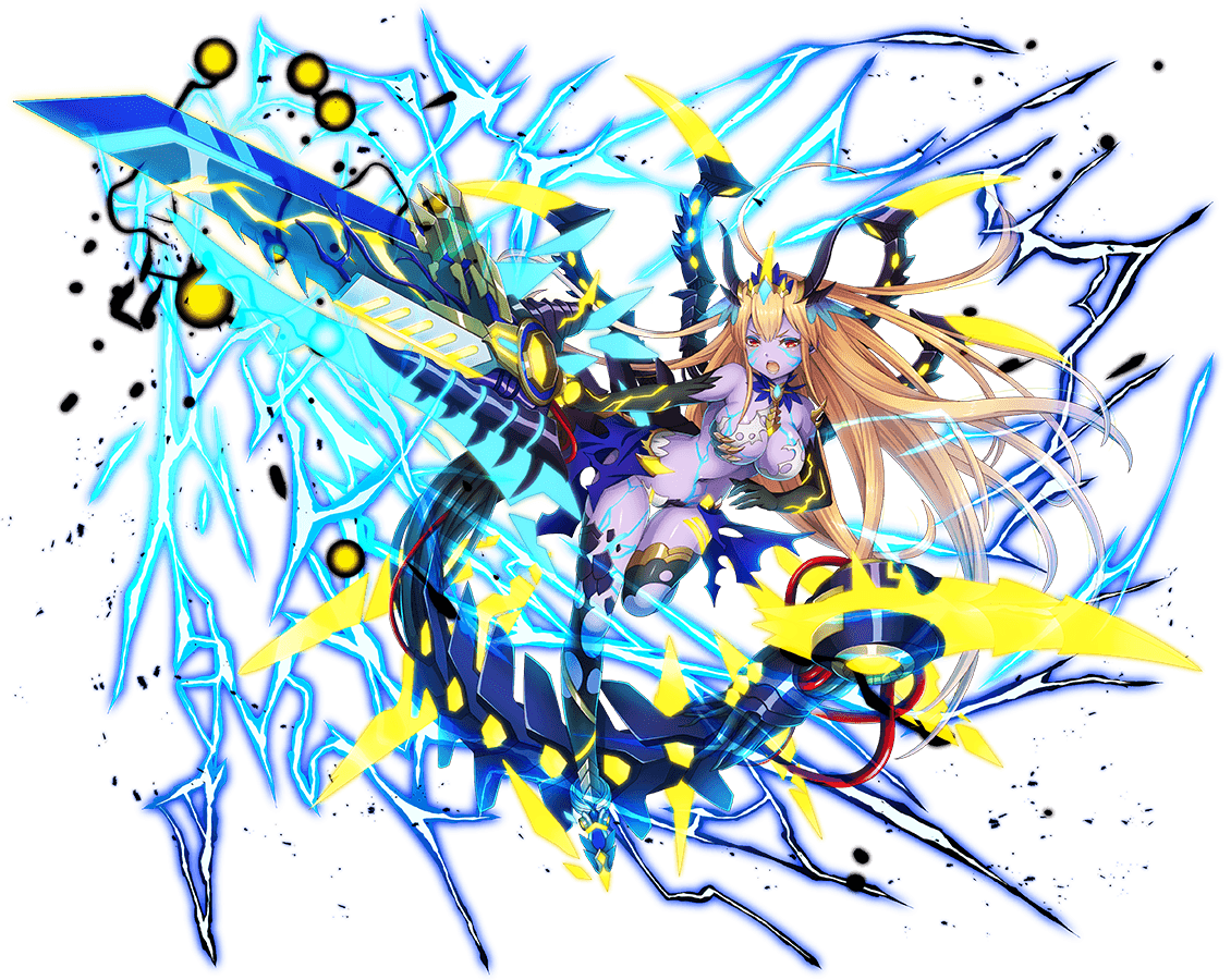 イリスが白煌都市の王家に与えられたエナジー適性と、主 を守る強い決意、そして特異錬成術師の能力によってその 力を限界を超えて引き出した姿。強い出力を持つイリスの 錬成術だが、それは王家が目指していた古式錬成術とはほ ど遠いものに過ぎなかった。しかし、それで構わない。大 切な主の命と意志を守れるだけの力であるなら、それだけ でイリスにとっては十分だから。生まれ変わる白煌都市の なかに、ソレイユの笑顔を残すことができるなら……その ためになら、この身の全てを捧げよう――身に纏う雷光は その決意を表すように激しく爆ぜ続けていた。 |