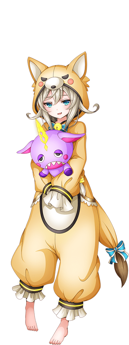 商品番号KGRM-011『がるっぴー』。技術研究局がこれま でに築き上げてきた着ぐるみパジャマ製作のノウハウを全 てつぎ込んだ製品である。気温や湿度といった周辺環境に 応じて内部の温度を調整することが可能であり、着用者の 身体に応じてサイズを自動調整できる伸縮機能等を備えて いる。大人気教育アニメ『こけっぴー』シリーズの最新シ リーズに登場するキャラクターの着ぐるみパジャマであ り、発売前から予約が殺到し、予約完売状態となった。そ の大人気製品を、ウェシルが入手した手段については一切 の情報が秘匿されている。 |