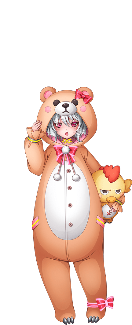 商品番号KGRM-006『クマッコさん』。アルケミーの大人 気ショートアニメ『こけっぴー』の第二シーズンに登場し た子熊のキャラクター商品。主役のこけっぴーが作中で助 けた最初の動物の子供であり、以降は意地っ張りなこけっ ぴーの優しさを解説する助手のような立ち位置で活躍し た。こけっぴーの優しさを視聴者に伝える子供の立ち位置 から、アルケミーの学童を中心に人気を博し、スピンオフ 作品『クマママとクマッコさん』の制作が決定している。 なお、こけっぴー関連商品の制作費用を捻出する為、技術 研究局は年間予算の一割を消費した。 |