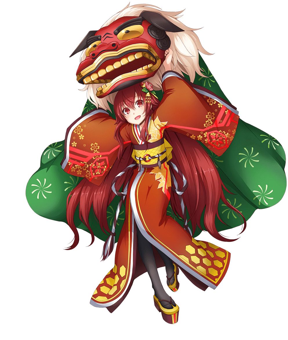 錬成術師登録名『サカキバラ・ミツバ』。 聖炎都市の神社を管理する榊原家の三女。役職は無く、家業を手伝いつつも自由奔放に過ごしている。 趣味は旧時代に伝わる『獅子舞』という神事を学ぶことで、季節を問わず、獅子の被り物をして街を闊歩している。 街中を獅子の被り物が闊歩する姿は異常にも見えるが、持ち前の愛嬌で街の住民たちからは可愛がられて、密かに聖炎都市の名物となっている。 錬成術師登録名『サカキバラ・ミツバ』。聖炎都市の自神社を管理する榊原家の三女。役職はなく、 家事を手伝いつつも自由奔放に過ごしている。趣味は旧時代に伝わる『獅子舞』という神事を学ぶこ とで、季節を問わず、獅子の被り物をして街を闊歩している。街中を獅子の被り物が闊歩する姿は異 常にも見えるが、持ち前の愛嬌で町の住民たちからは可愛がられて、密かに聖炎都市の名物となっている。 |