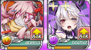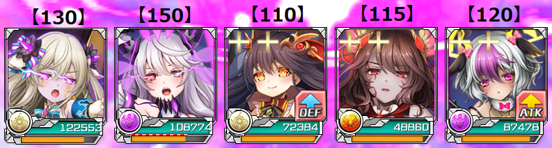 | レアリティ | Lv | タイプ | HP | ATK | DEF | 回復 | レアリティ | Lv | タイプ | HP | ATK | DEF | 回復 |