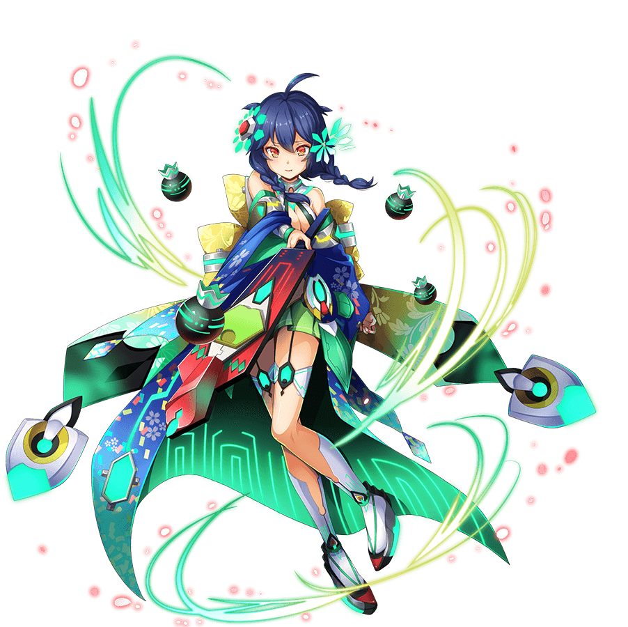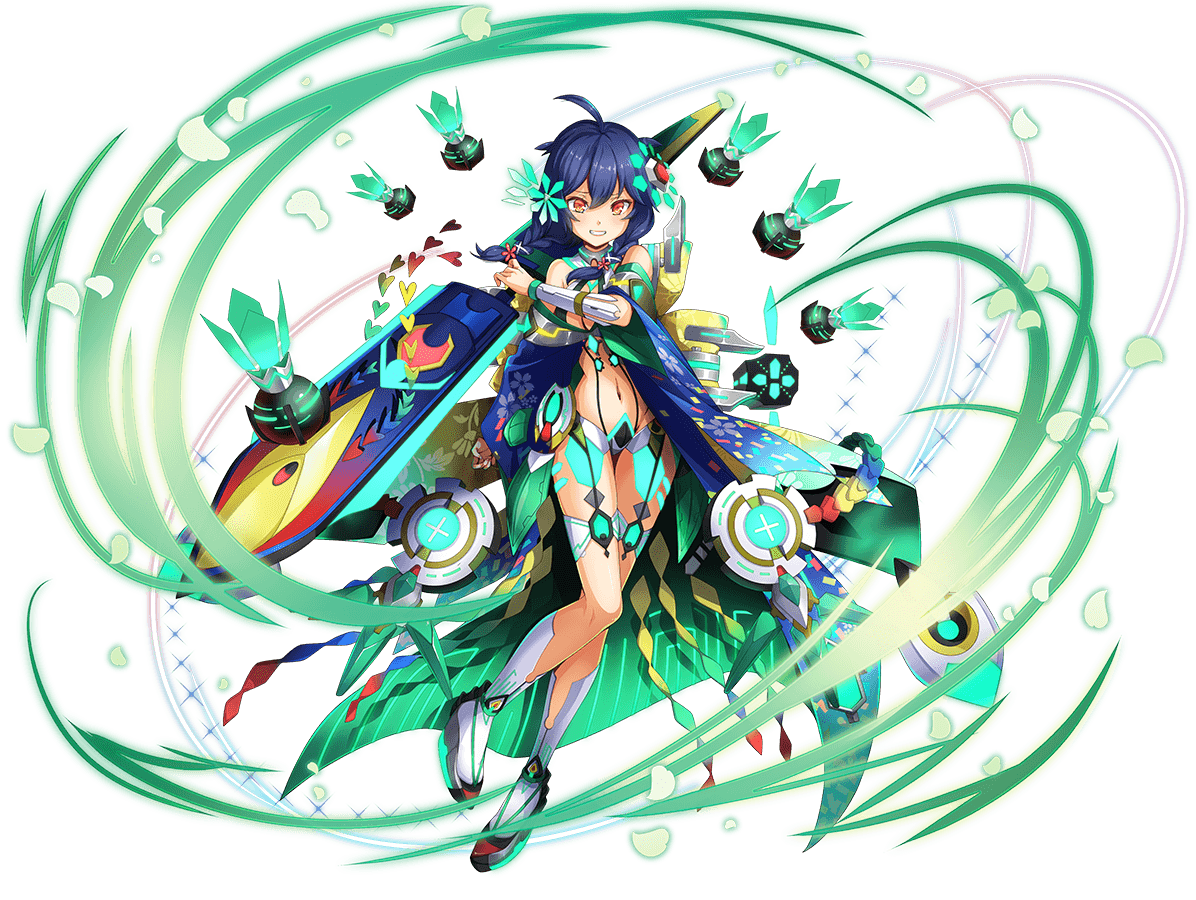 • 星5通常9hit/LB全体9hit 敵全体に強力な風属性ダメージ&3T味方に攻撃と防御中アップ