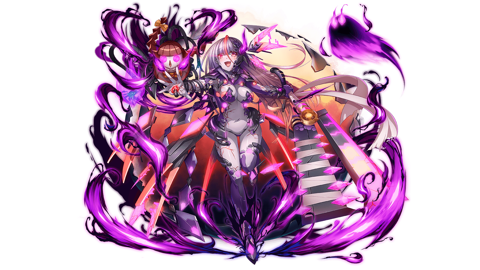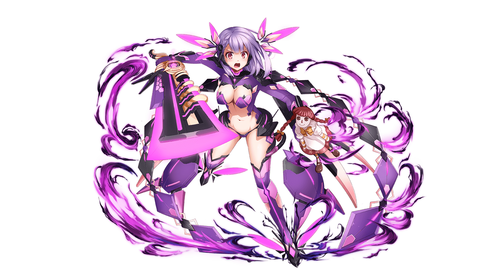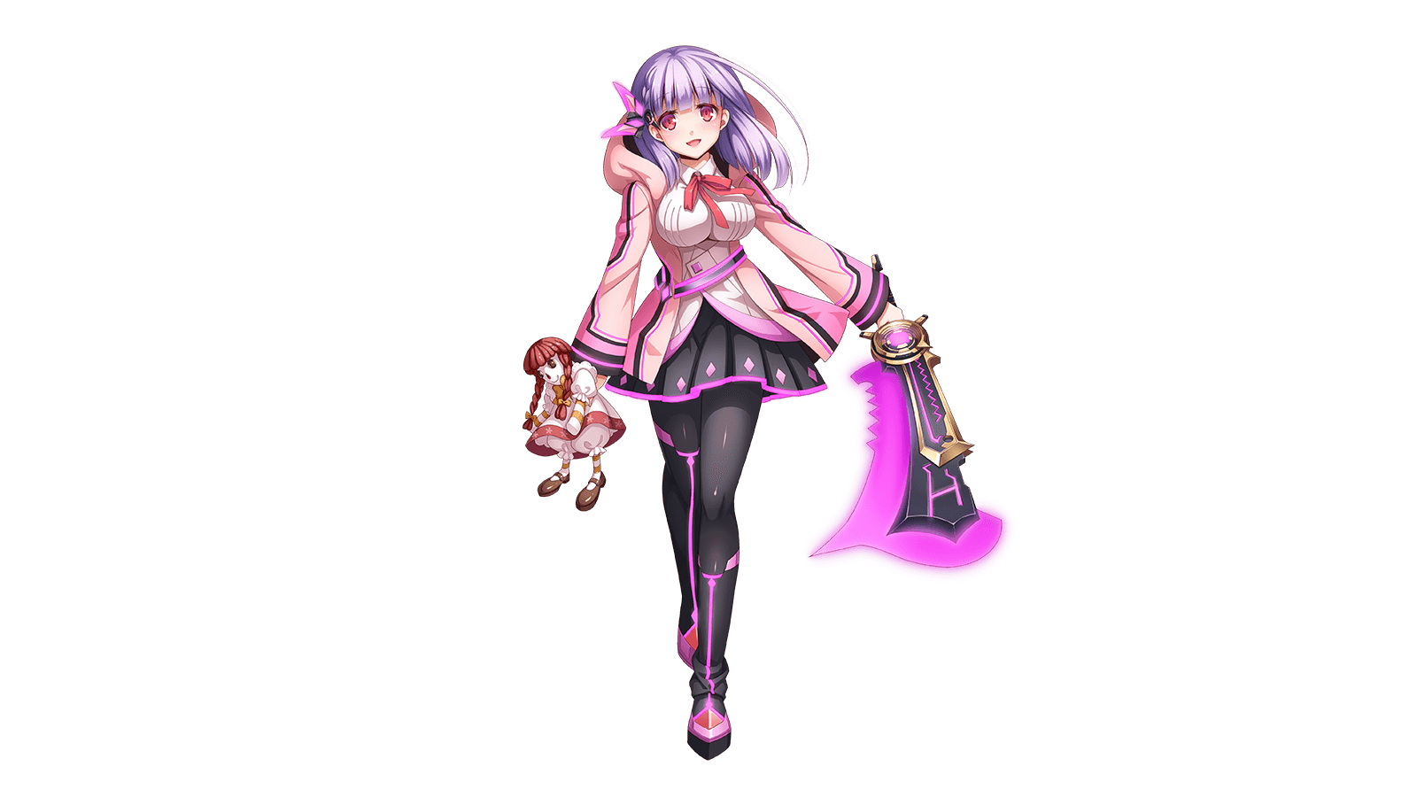可憐な容姿には見合わないハチェット型の武器『ヒュプノス』を錬成する。 見た目からして凶悪な刃には濃密な闇のエナジーが込められており、触れた物質の結合を脆弱にする効果を発揮する。 だが、真に恐れるべきはヒュプノスの刃ではなく、繭の持つ人形である。 日常的に闇のエナジーを込められており、今やその縫い糸の一本ですら常人であれば触れただけでも廃人と化す濃度のエナジーを内包している。 繭に害を成そうとする存在は、例外なくこの人形の呪いに晒される。 |