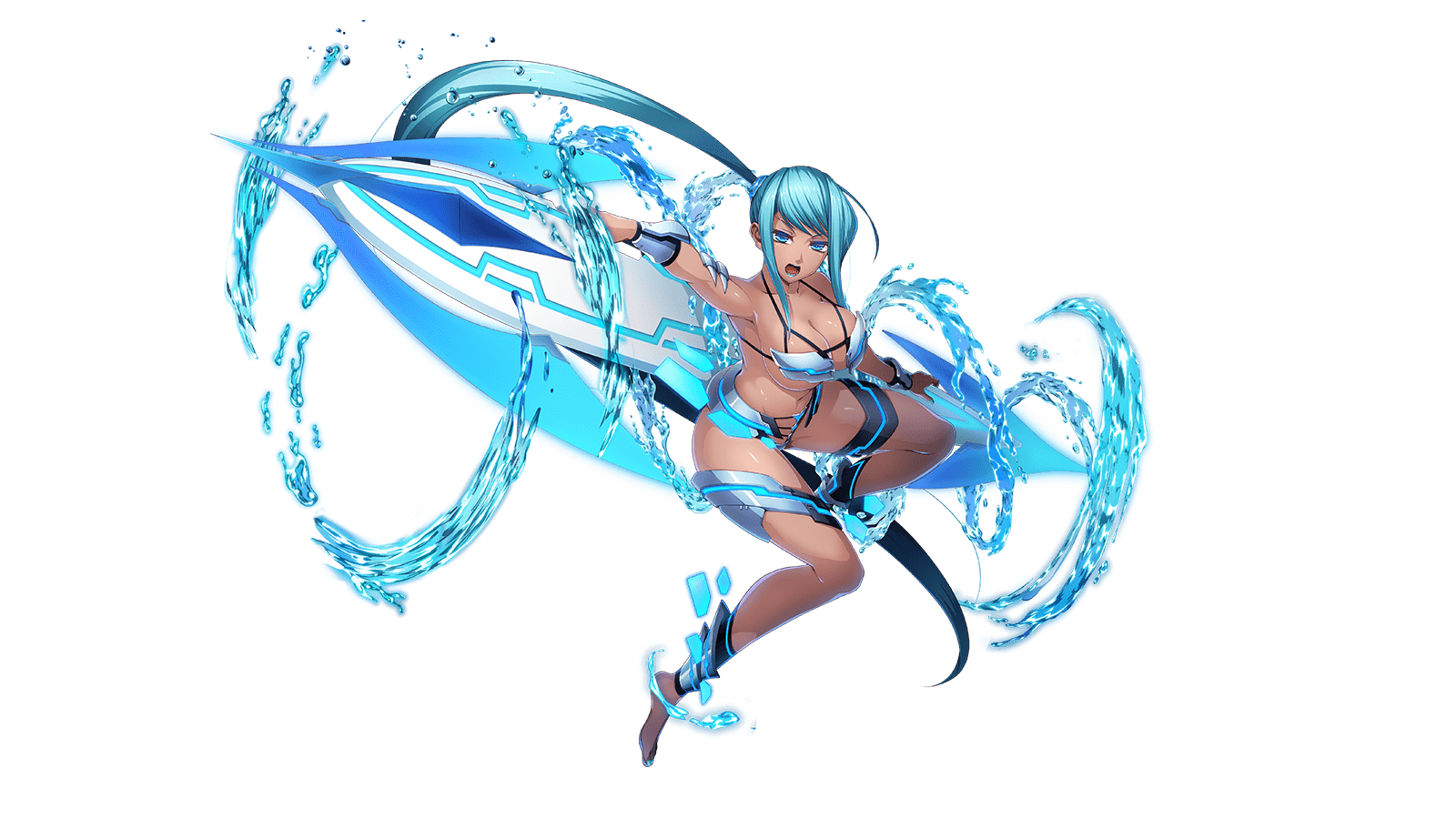 海に触れた瞬間、ラクアは生命の高ぶりを感じた。彼女の内に浸み込んだ水のエナジーが活性化し、かつてない力が 沸き上がるのを感じる。異世界の海は、ラクアが望む海とは少し違う。しかし、理想に限りなく近い奇跡の地の存在 に、彼女は興奮を抑えきれなかった。その日の晩、彼女は『身体が濁る』と固辞し続けていたエナジー浸食への抵抗 薬を迷わず口にした。すべては、母なる海を目にするまで、生き残るために。 |