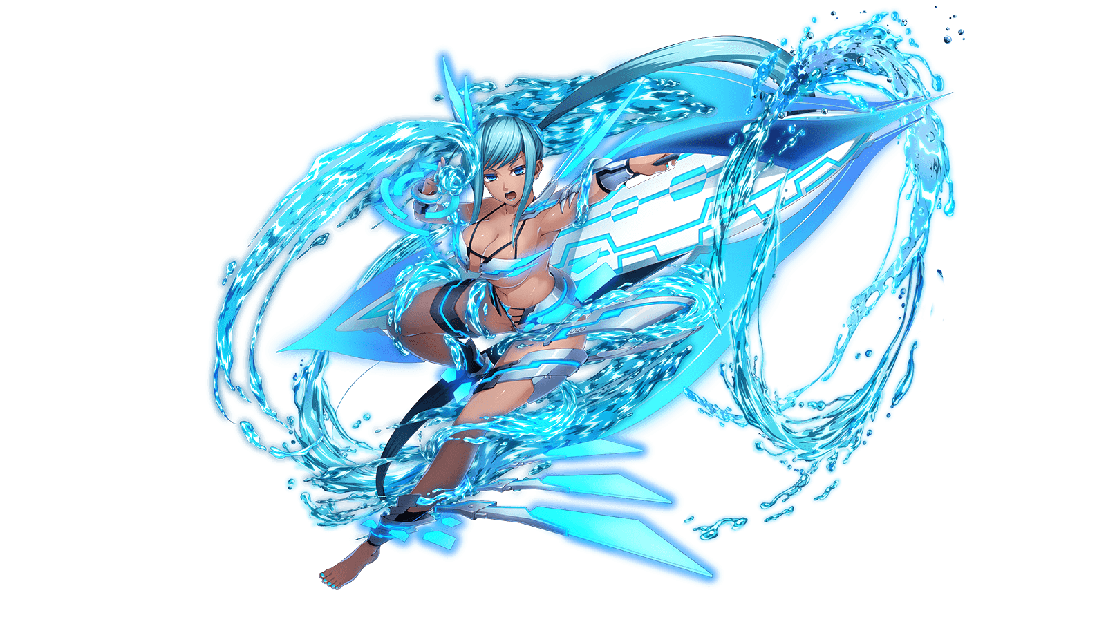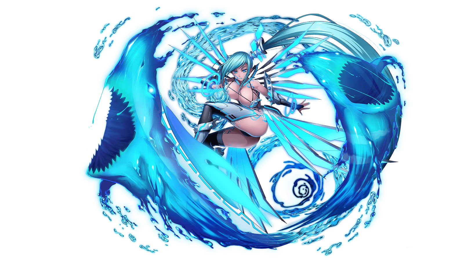 エナジー浸食が進行する最中でも、ラクアの意識は明確にあった。異世界の海に触れた彼女は『生命の源への帰還』 という願望を強めると同時に、『生への渇望』を得る。自分の還るべき海はここにはなく、戦いの果てにきっとたど り着けるものである。ラクアは零れ落ちる己の生命を掬い上げ、強化し、更なる力をその身に宿す。いつか、果てる その日まで――。 |