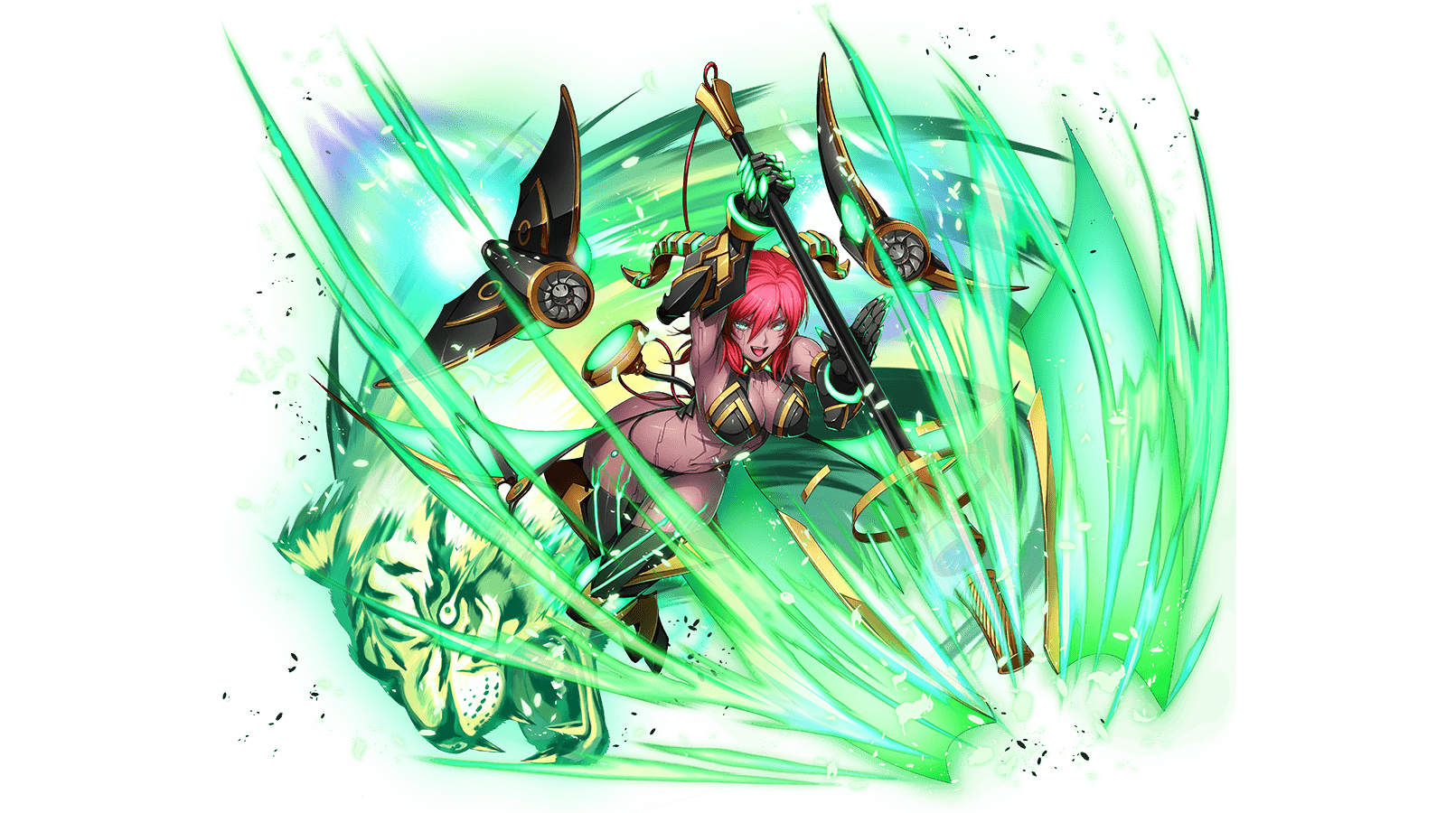 麻巳の練成武装『テンペスト』は刃先を押し付けることによって対象をねじ切る戦斧である。 その刃は彼女の憤りに呼応して、より重圧に、激しい暴風を纏う。 彼女の強い憤りは、タナトスの侵攻により発生した『戦災孤児』の存在にある。 彼女が得意とする『暴力』だけでは救うべき小さな命に救済を与えることが出来ない。 それが分かっているからこそ、麻巳の憤りは激情に変わり、その暴力をさらに高めていく。 |
