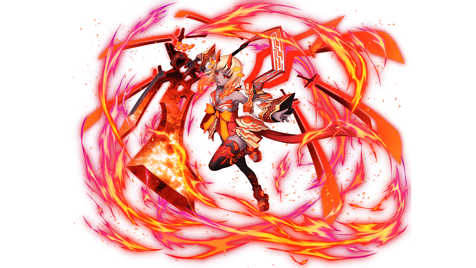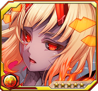 敵単体に火属性ダメージ&Xターン味方の攻撃力絶大アップ、防御力ダウン